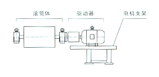 WD(Ⅱ)型外裝式減速滾筒由滾筒體、驅動器及電機支架三部分。滾筒體主要包括滾筒殼體、支座及裝在滾筒內的減速器組成。驅動器主要包括電動機、聯軸器、液力偶合器,逆止器、制動器等部件。電機支架是用型鋼焊接而成,用于安裝電動機和護罩,用戶也可按需要自行設計制造。