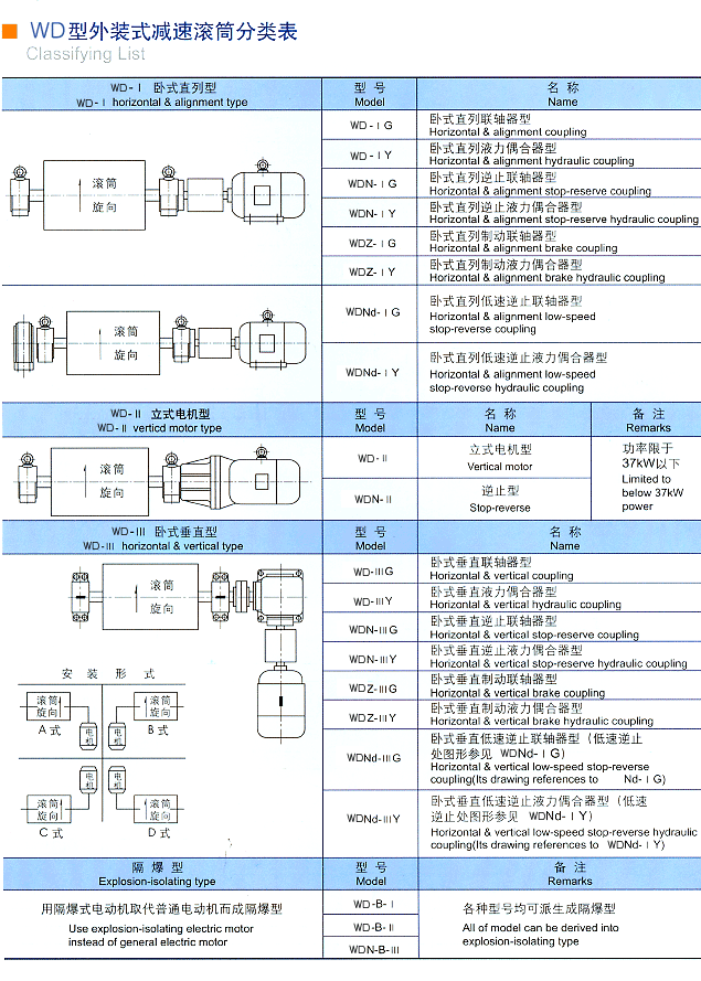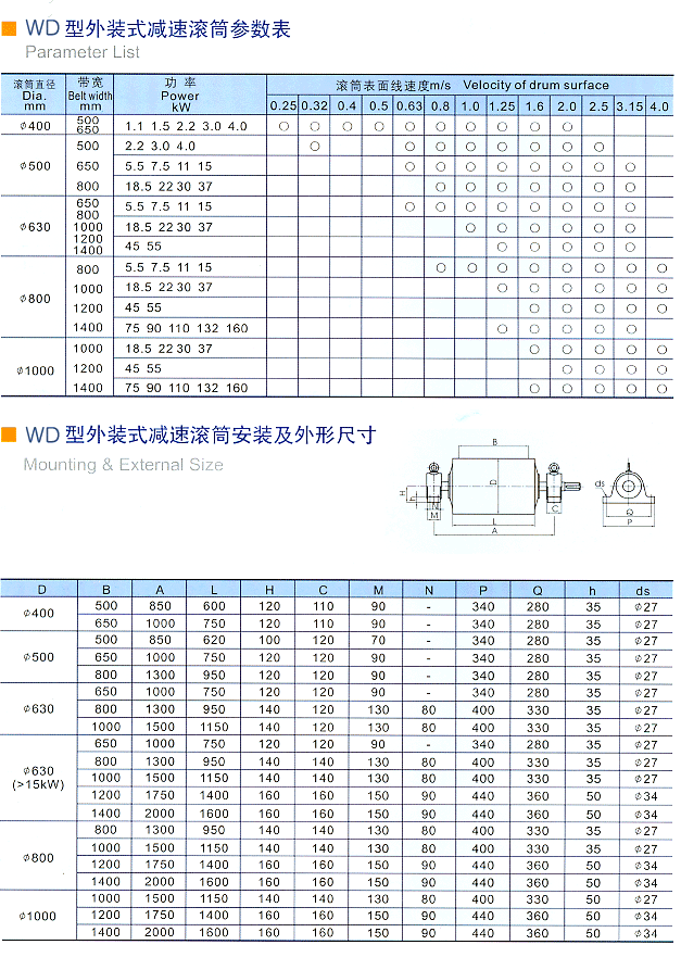 WD(Ⅱ)型外裝式減速滾筒性能及用途: